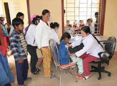 BS. Hồ Thị Thanh Hoa đang khám bệnh cho bệnh nhân tại Trạm y tế xã A Đớt, huyện A Lưới, tỉnh Thừa Thiên Huế.